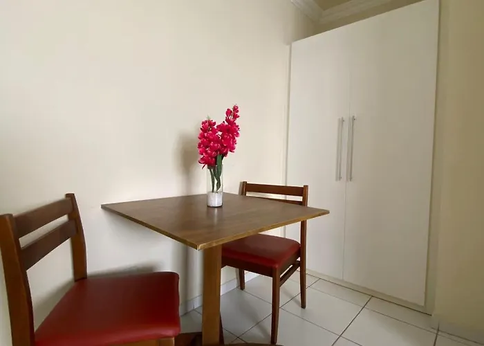 Alguns dos quartos com ar condicionado compreendem área de estar e varanda, e estão mobilados com armário.